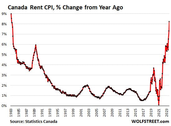 Рост арендной платы в Канаде вырос на 8,2% годовых в октябре, по сравнению с 7,3% в сентябре. И это самый большой показатель с апреля 1983 года.
