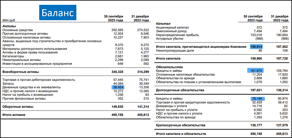 операционная деятельность 121 млрд (-24% г/г). Именно столько денег поступило в компанию за 9 месяцев. Снижение из-за падения цен на удобрения.