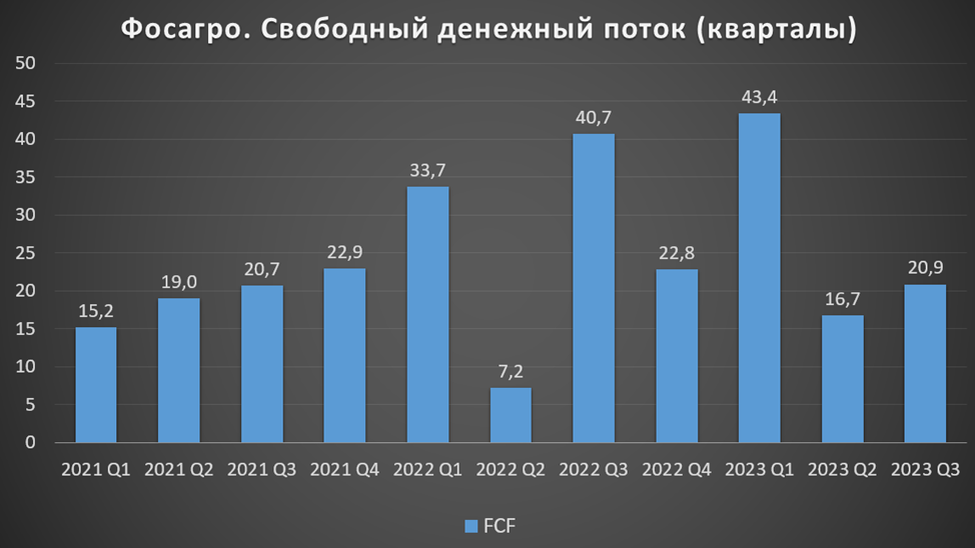 Свободный денежный поток, как за первые девять месяцев, так и за 3Q 23 достаточно высокий.