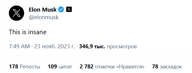 Но, видимо, эта тактика работает плохо. Потому что вчера большое эго Маска не выдержало и пожаловалось в "Х" на шведские забастовки: "Это безумие".
