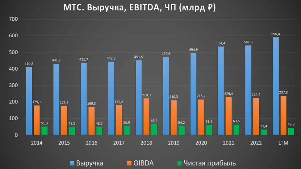 А среднегодовой темп роста выручки МТС ниже инфляции. Чистая прибыль LTM даже меньше, чем 9 лет назад.