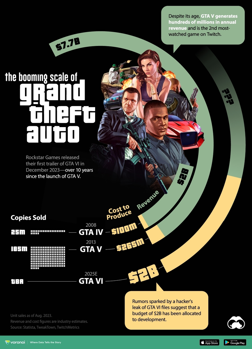 Аналитики оценивают затраты на выход GTA VI в 2 миллиарда долларов, включая маркетинговые и другие расходы. Огромный открытый мир (действие происходит в “Вайс Сити”, вдохновлённом Майами), ультрасовременная графика и, как сообщается, совершенно новый игровой движок - все это причины огромного бюджета игры.