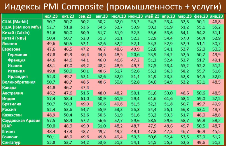 Композитный индекс деловой активности по мировой экономике в целом (Global Composite Index) в ноябре составил 50,4 пункта.