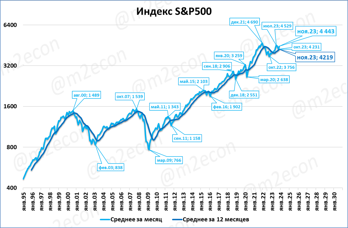 В ноябре среднее значение американского фондового индекса S&P500 составило 4 443 пункта.