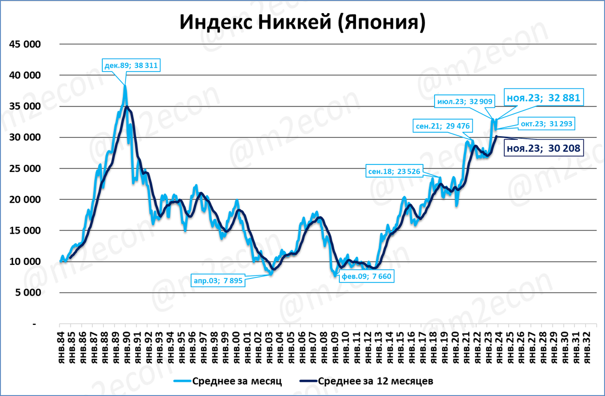 В ноябре японский фондовый индекс Никкей достиг отметки 32 881 пунктов. Это лучший ноябрь с 1989 года.