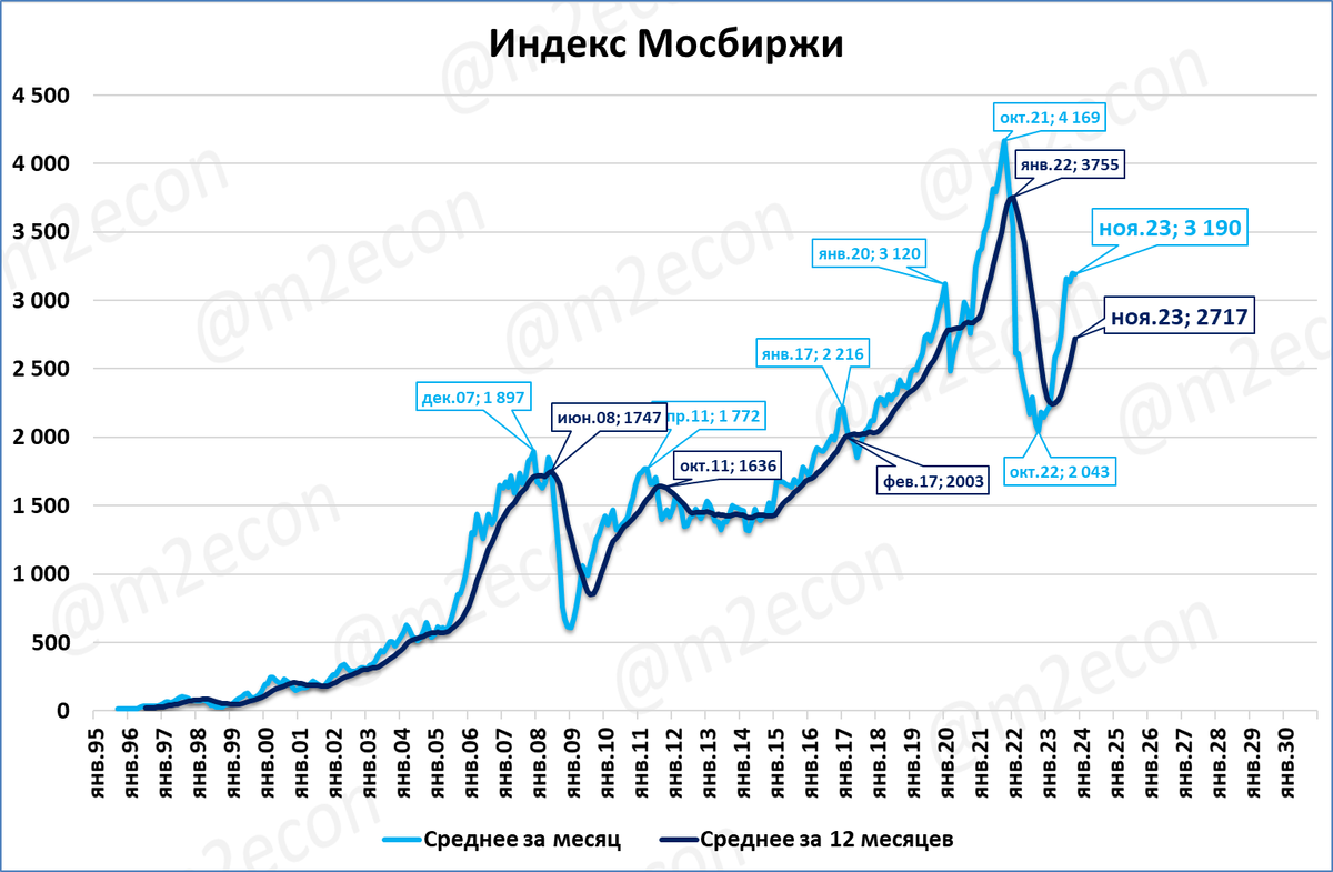 По итогам ноября индекс вырос на 47% годовых. Реальный индекс полной доходности растёт в годовом выражении восьмой месяц подряд.