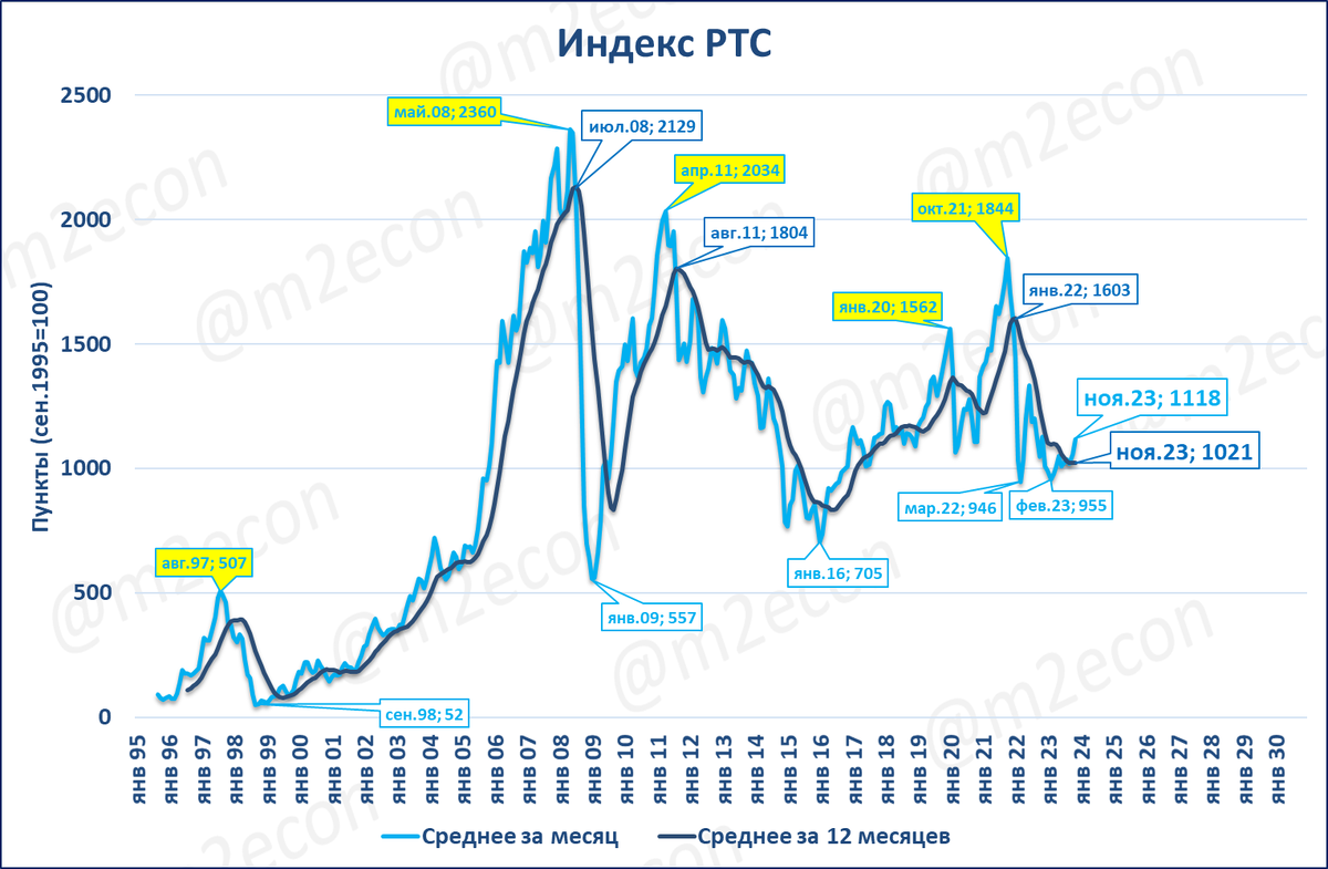 В ноябре среднее значение “долларового” индекса РТС составило 1 118 пунктов