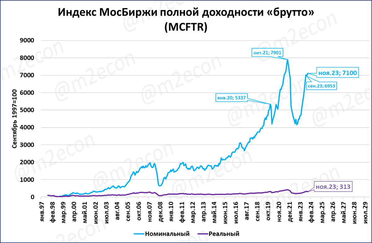 Отдельно реальный индекс полной доходности Мосбиржи приведён на графике ниже .