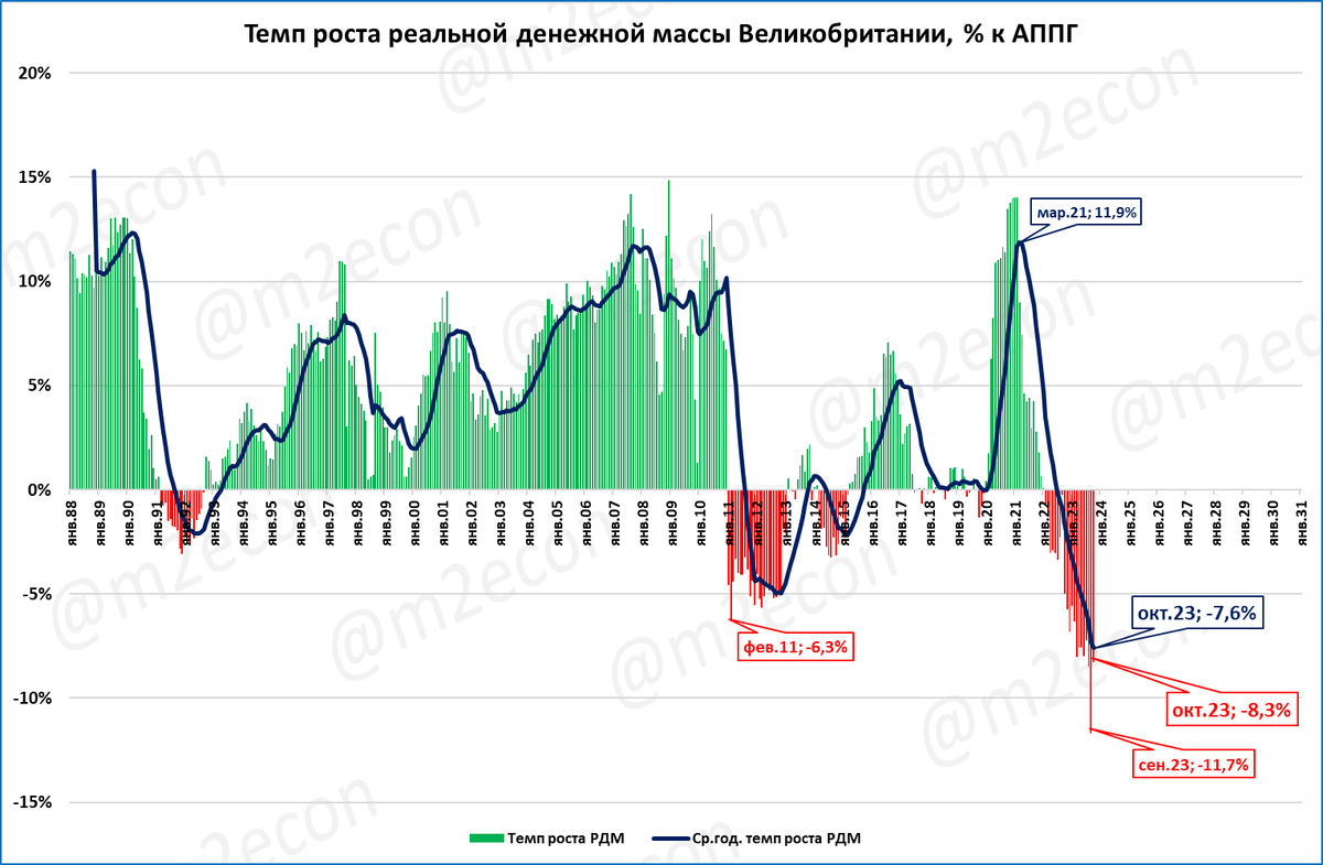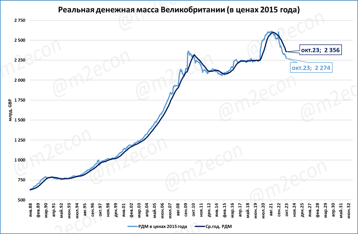 В Британии реальная денежная масса продолжает сокращаться, что негативно скажется на динамике ВВП.