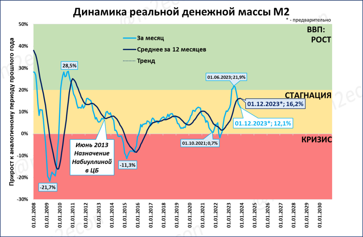 Среднегодовые темпы роста РДМ сейчас подросли до 16,2% (16,1% месяц назад). Это - рекорд с сентября 2011 года (за 12 лет).