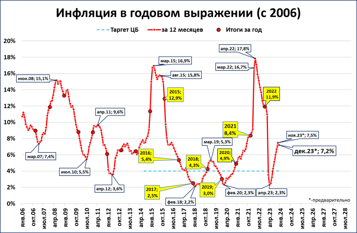 Прогноз ЦБ по инфляции (7-7,5%) воплощается в жизнь.