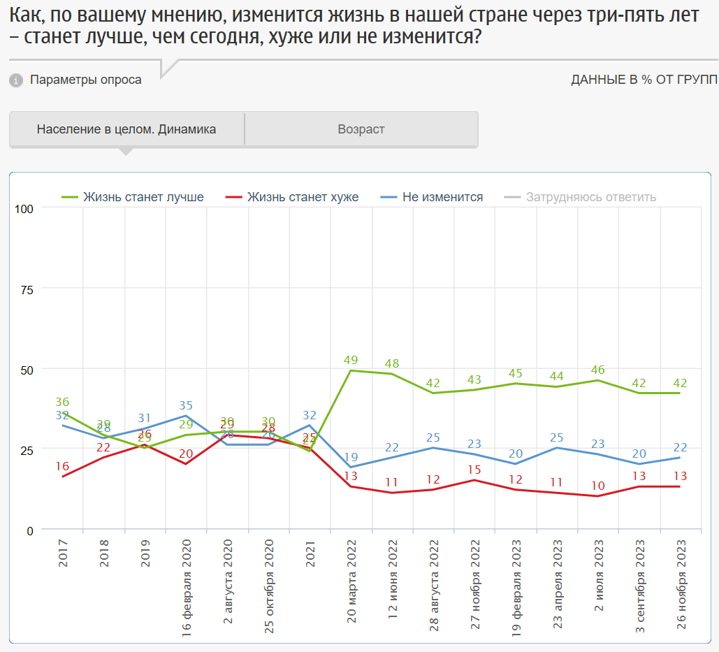 Судя по последнему опросу «Фонда общественного мнения», санкции определённо удались. Доля граждан, считающих, что как их личная жизнь, так и жизнь в целом в нашей с вами стране на горизонтах полгода-год и три-пять лет улучшится, растет.