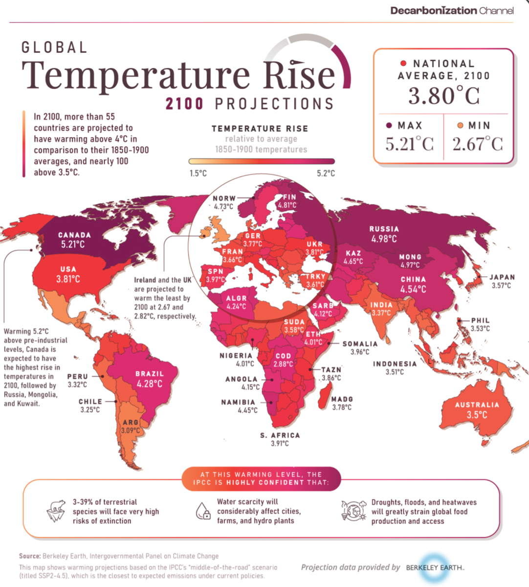 Смотрите, нам вангуют к 2100 году повышение температуры практически на 5%. Ну так прям получится весьма мягкий климат, я считаю.