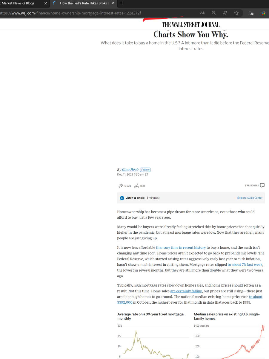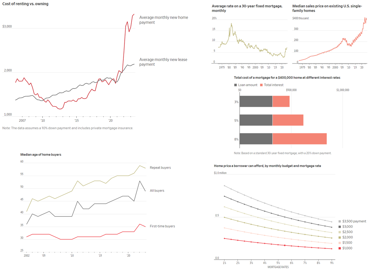 Домовладение становится несбыточной мечтой для всё большего числа американцев. Даже для тех, кто мог позволить себе покупку всего несколько лет назад. Доступность жилья упала до минимальных значений за всю историю. И ситуация взад-назад не собирается. Ипотечные ставки упали до 7% на прошлой неделе - самый низкий уровень за несколько месяцев - однако они всё ещё более чем вдвое выше, чем два года назад.
