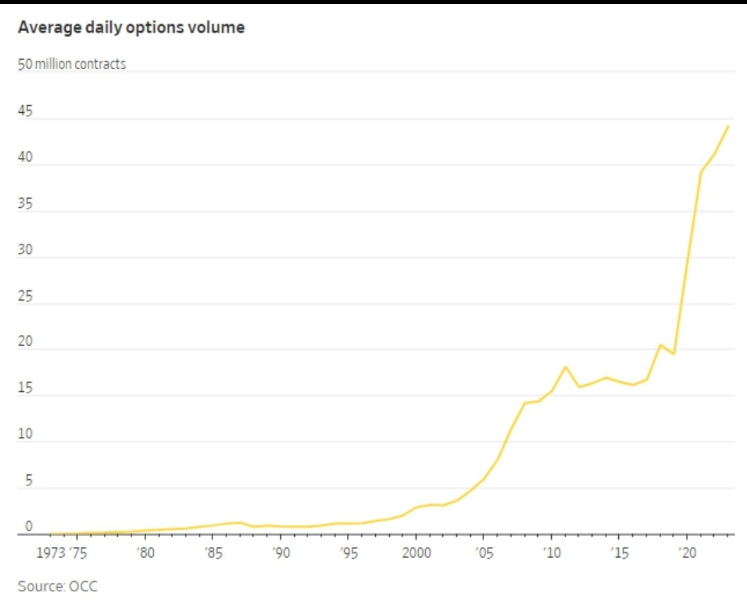 Среднедневной объем опционного рынка в США достиг цифры в 44 млн.контрактов. Это исторический рекорд. И это более чем в два раза выше, чем 5 лет назад.