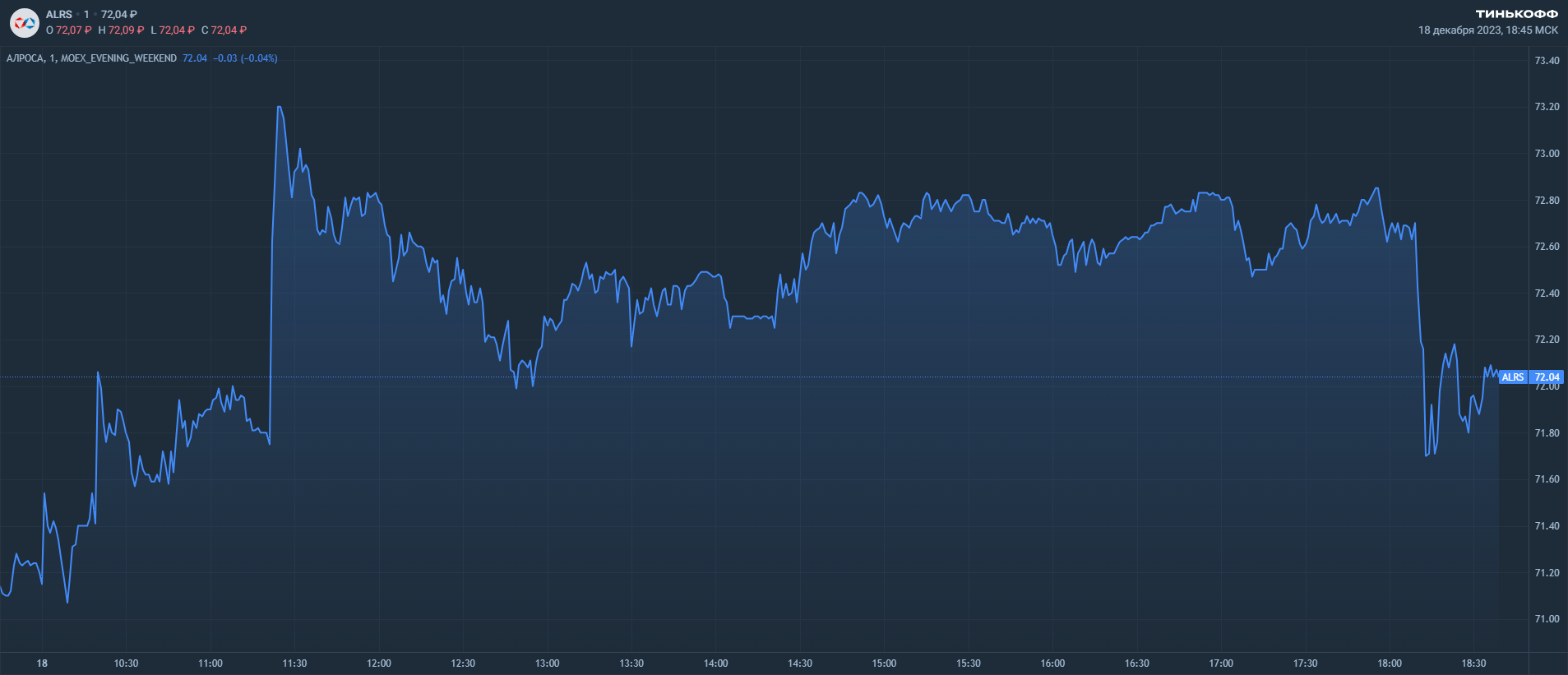 На фоне новости акции добытчика алмазов АЛРОСЫ падали более чем на 1,7%.