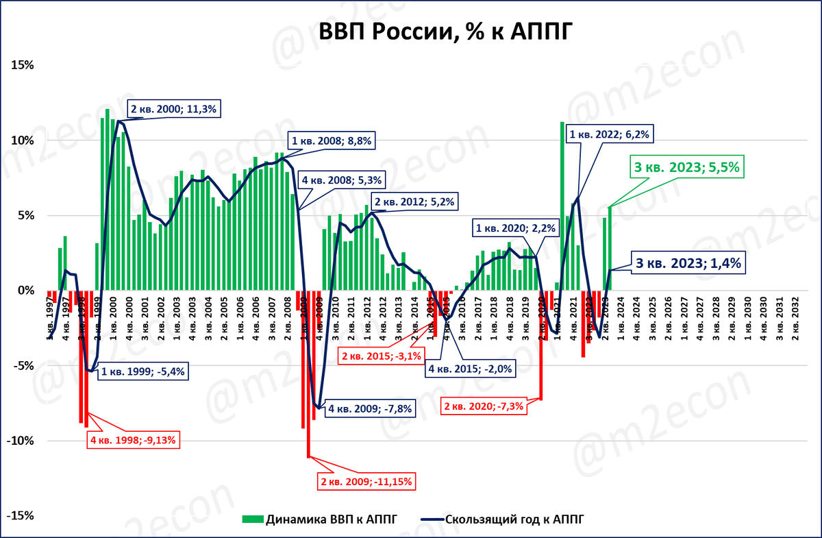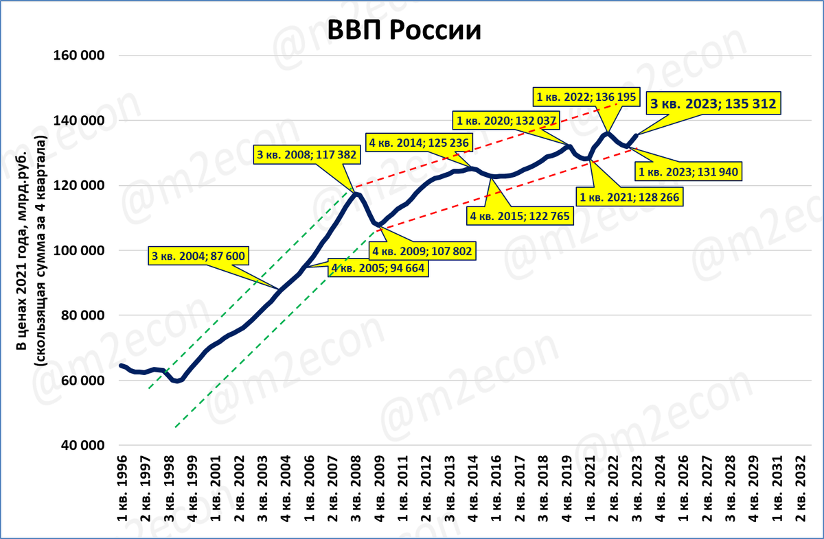 ВВП за четыре квартала (скользящий год) пока не вышел на уровень «до СВО».
