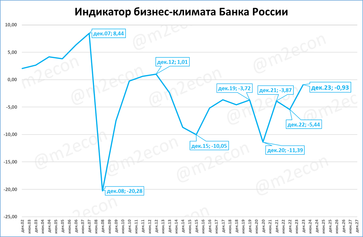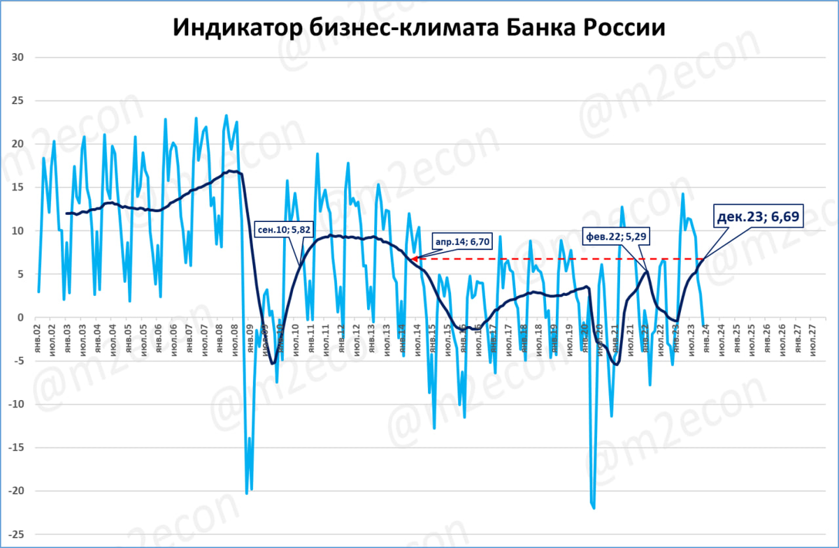 Индикатор бизнес-климата ЦБ ставит новые многолетние рекорды.