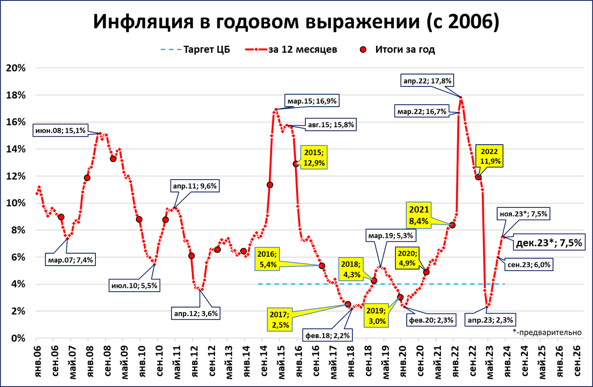 Если такой рост сохранится до конца месяца, то по итогам года инфляция составит 7,47%. (7,48% по итогам ноября).
