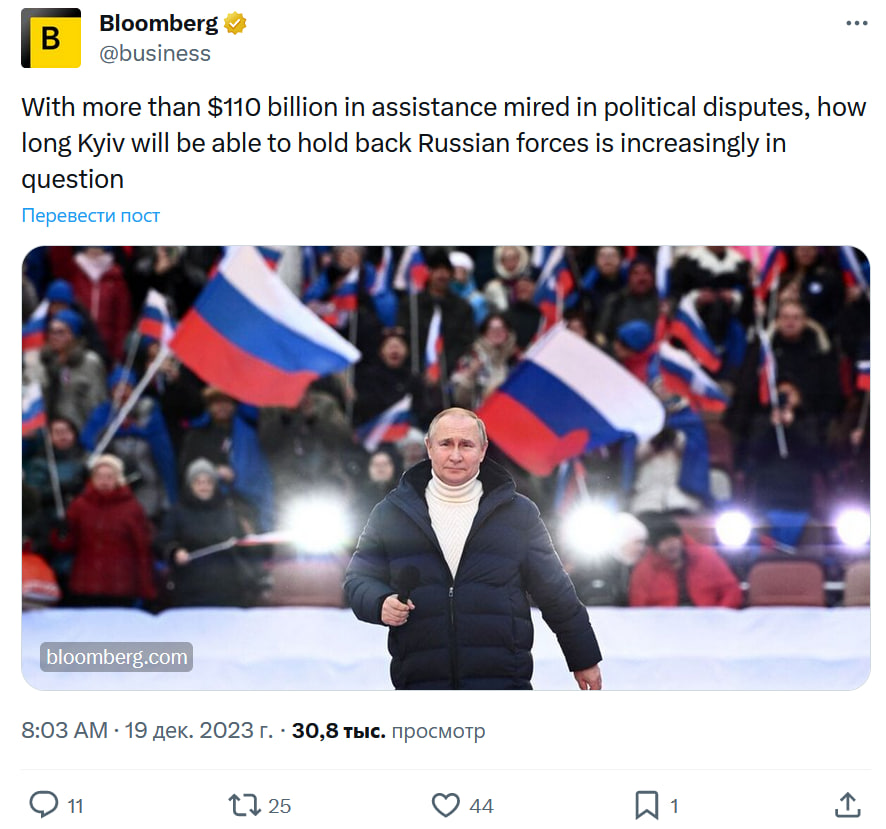 Рупор западной пропаганды независимое сми Bloomberg говорит нам (русским), дескать не сильно радуйтесь, а то...! А то... ну, пожалуйста, не радуйтесь. А, ну и обвинили нас сразу же с ходу, конечно.