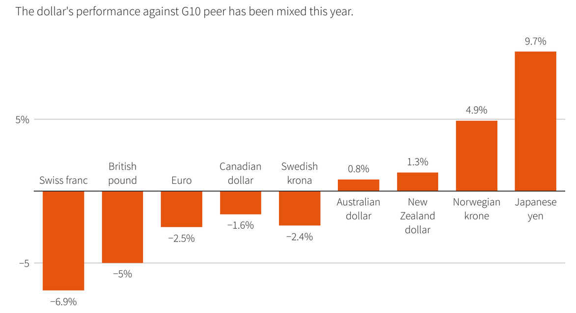 Доллар к 10 основным валютам