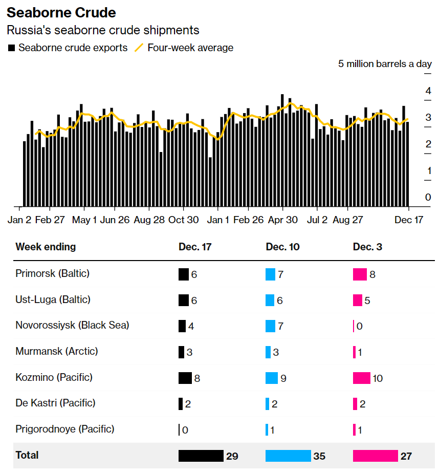 На прошлой неделе он слегка снизился по сравнению с предыдущей, однако остается выше 3 млн.барр. в сутки. Более 1,7 миллионов из них ежедневно проходит через Красное море. Там все сейчас боятся плавать, но танкера с нашей с вами нефтью хуситы не трогают. Правда, независимое сми Bloomberg всё-таки надеется, что, возможно, хотя бы по ошибке, но прилетит.