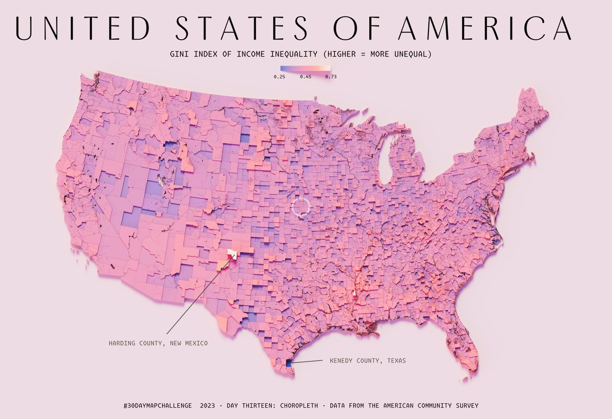 Вот тут попалась на глаза карта США, где индекс Джини по округам разнесен.