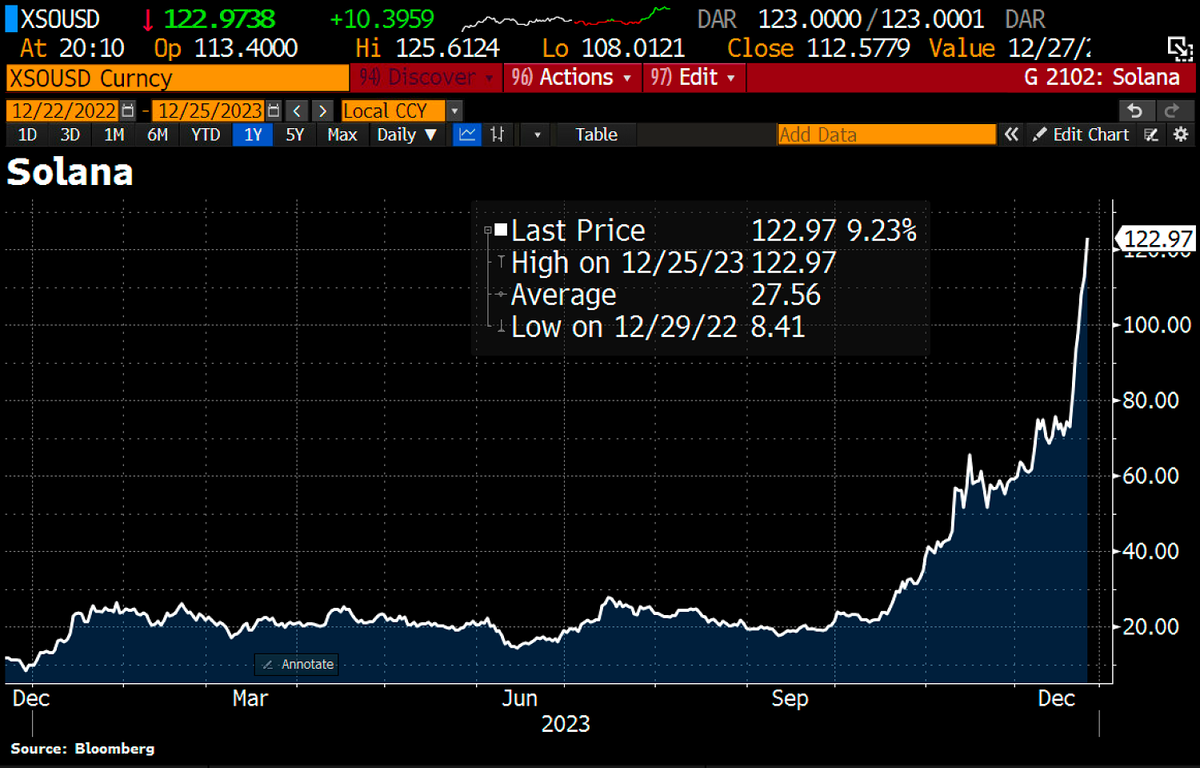 Криптовалюта Солана стала одной из самых дикорастущих в этом году. 1100% за год. В результате её капитализация стала четвёртой среди всех криптоденег. Говорят, её капитализация даже выше капитализации Сосьете Женерале.