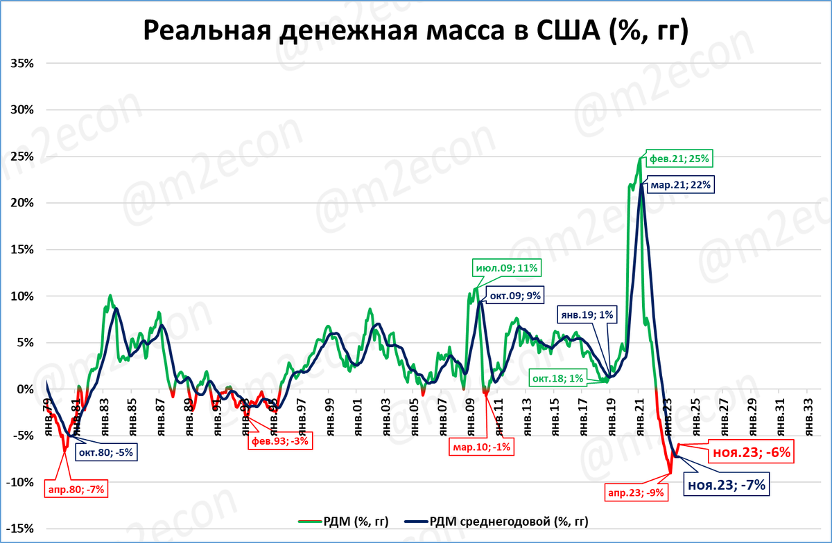 А реальная денежная масса (РДМ) переживает сильнейшее падение с 1940-х годов.