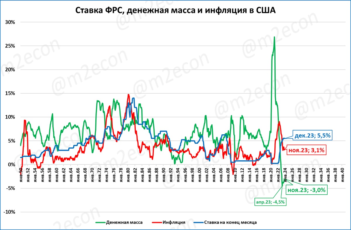 Во вторник 26 декабря ФРС опубликовала статистику денежной массы по итогам ноября, она составила 20,8 трлн долларов. Это на 3% меньше, чем год назад.