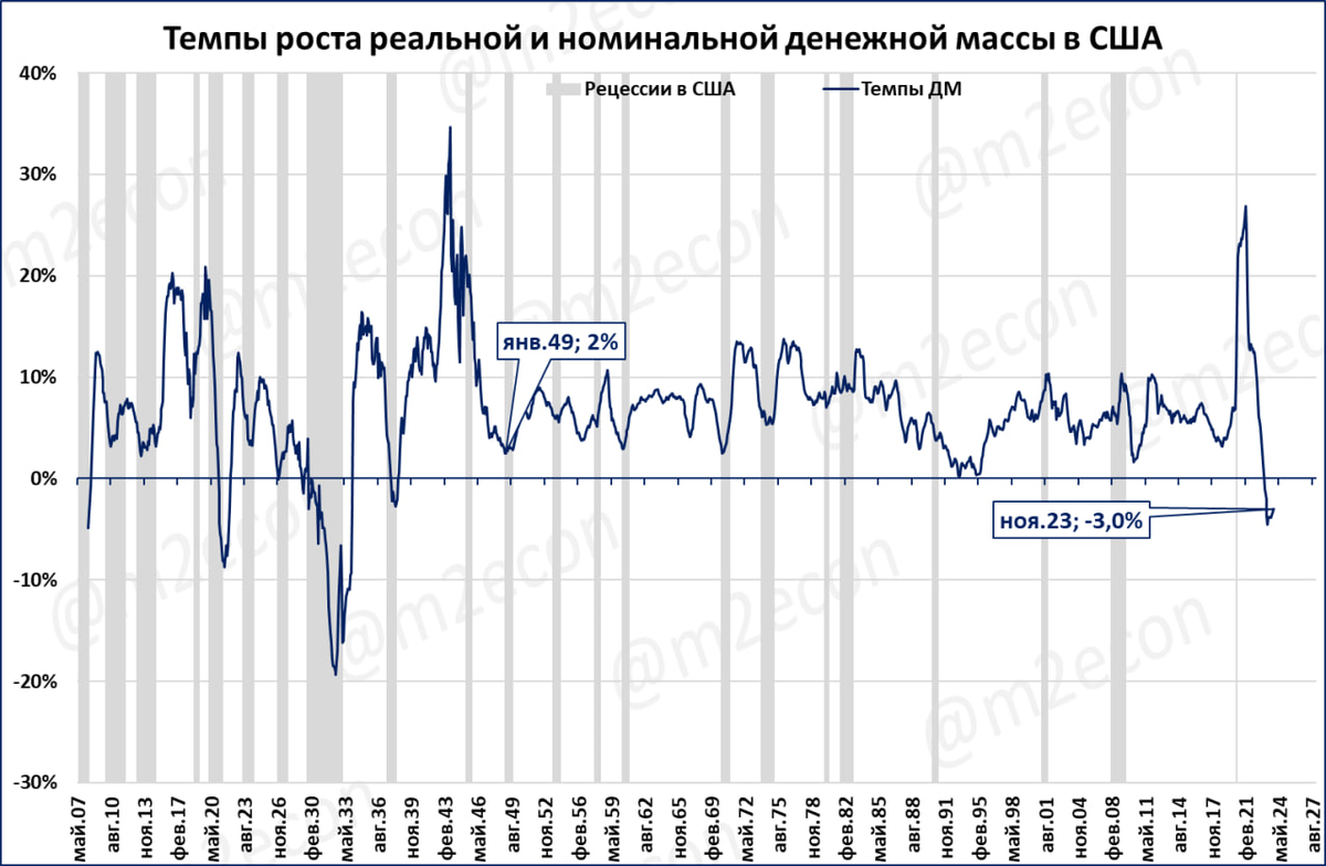 Денежная масса в США: сильнейшее со времён Великой депрессии сжатие продолжается