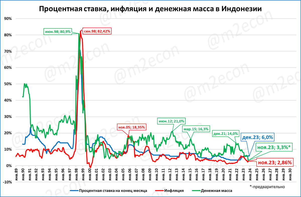 Замедление (почти прекращение) роста РДМ позволяет предположить, что ВВП Индонезии тоже начнёт замедляться.