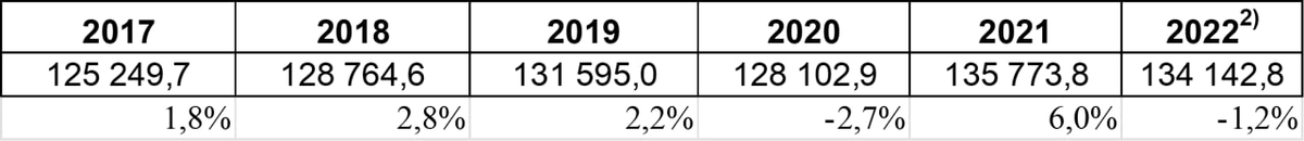 А в 2022 году падение было не таким сильным: не -2,1%, а всего -1,2%.