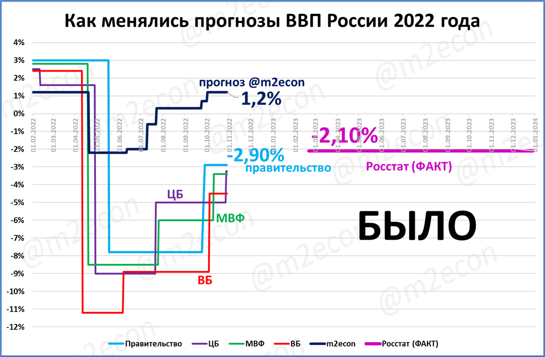 Напомним, как менялись прогнозы ВВП 2022 года и как они смотрелись на фоне прежней оценки Росстата.
