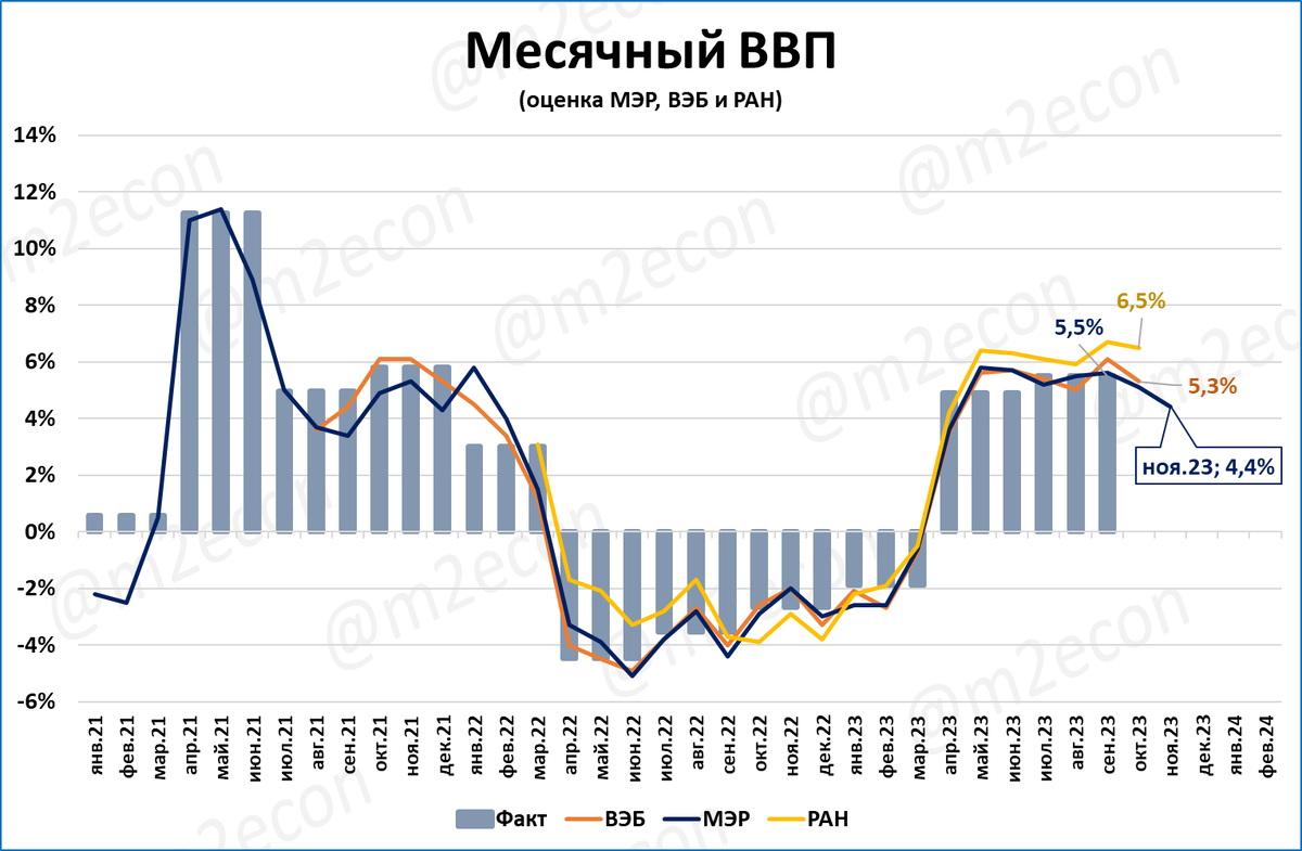 Минэкономразвития оценило рост ВВП в ноябре: +4,4%.