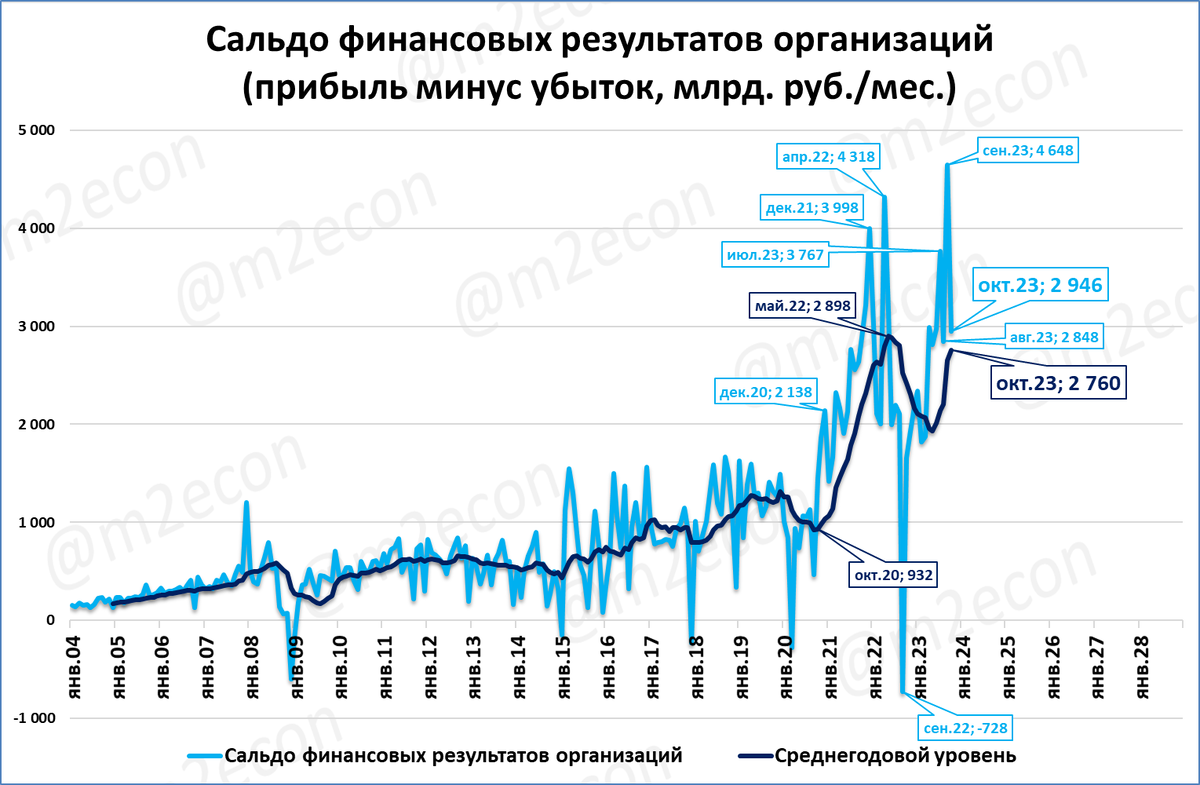 Можно отметить, что такой прибыли как в октябре экономика в до 2020 года не видела, за исключением одного месяца – декабря 2007 года.