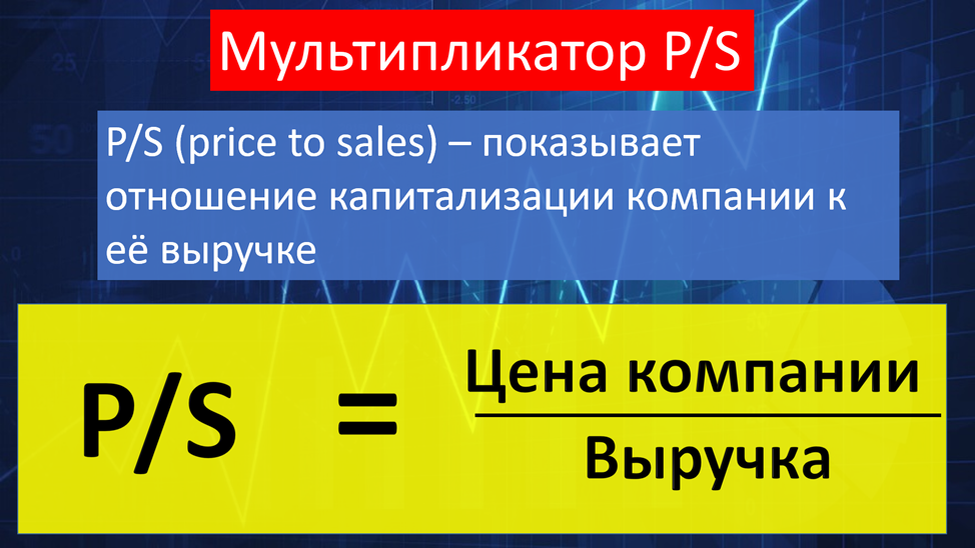 Мультипликатор P/S — это отношение рыночной цены акции к выручке, приходящейся на одну акцию. Лучше всего использовать для сравнения компаний одной отрасли. Говоря по-другому, этот мультипликатор показывает сколько инвестор платит за единицу выручки. Чем он меньше, тем лучше.