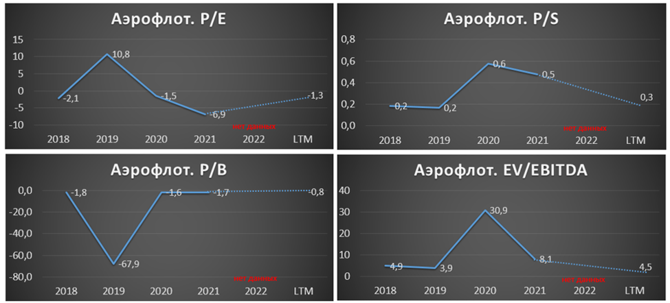 Из-за отрицательного капитала и чистой прибыли многие мультипликаторы нерепрезентативны: