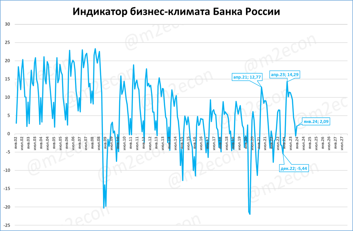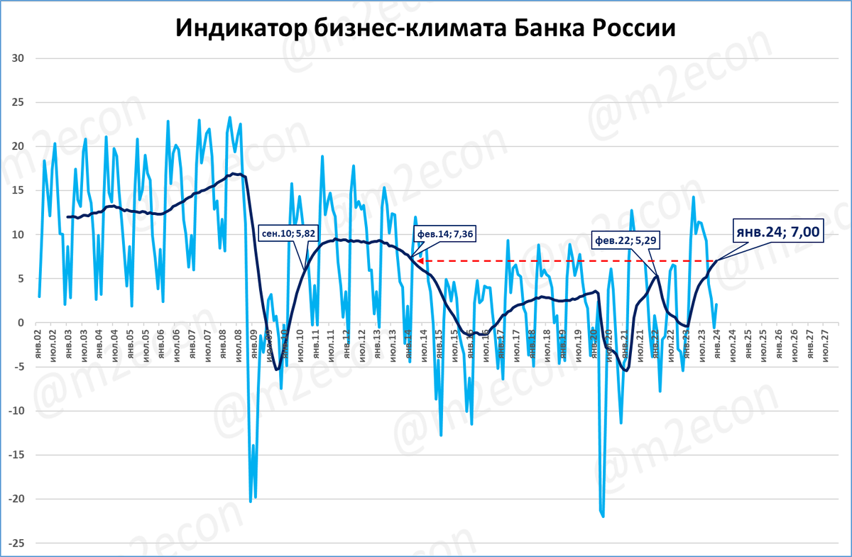 Получается, что «бизнес-климат» в России “переболел” украинский кризис длительностью десять лет и вышел на докризисные уровни.