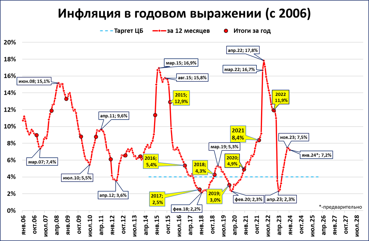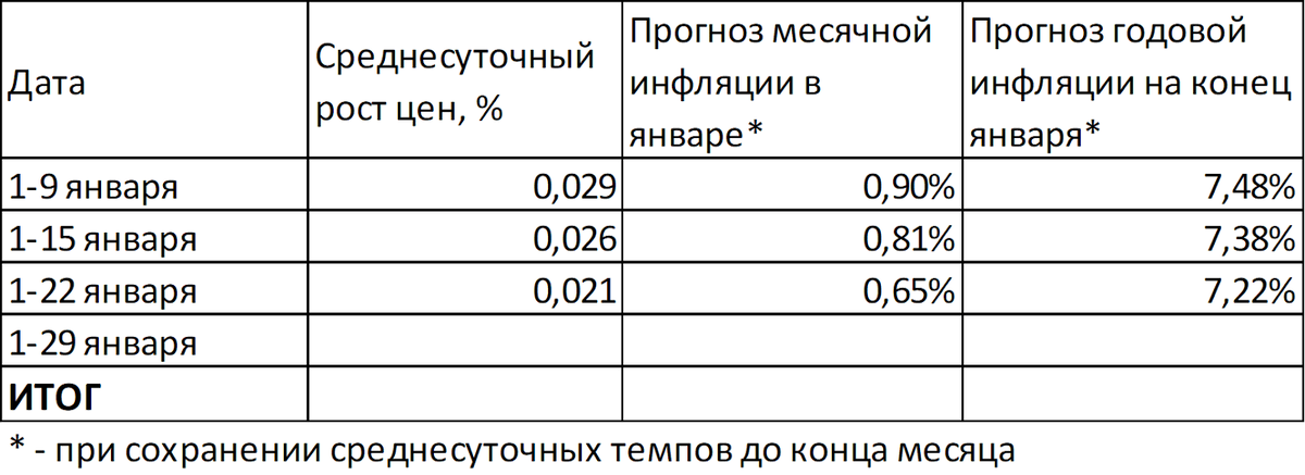 Если такой темп сохранится до конца месяца, то по итогам января инфляция составит 7,2% годовых.