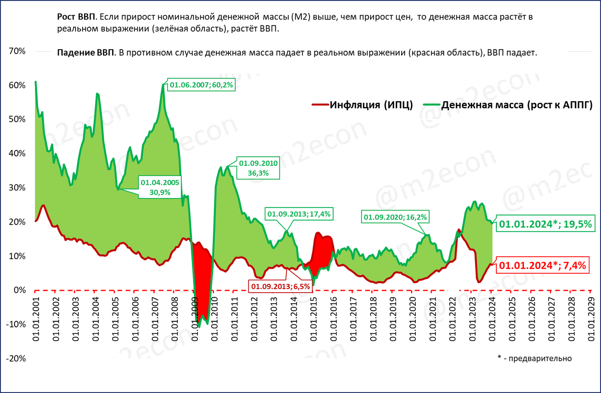 Если учесть и инфляцию, которая составила 3,4% годовых, то реальное падение денежной массы составило -5,5%.