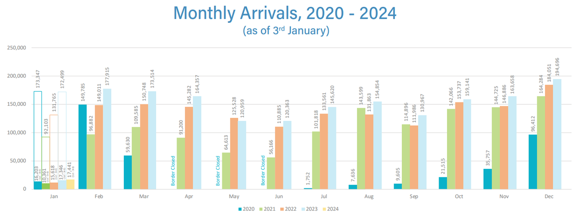 А вот за первые 24 дня января 2024 года туристы из России в количестве 16 043 человек заняли первую строчку хит-парада.
