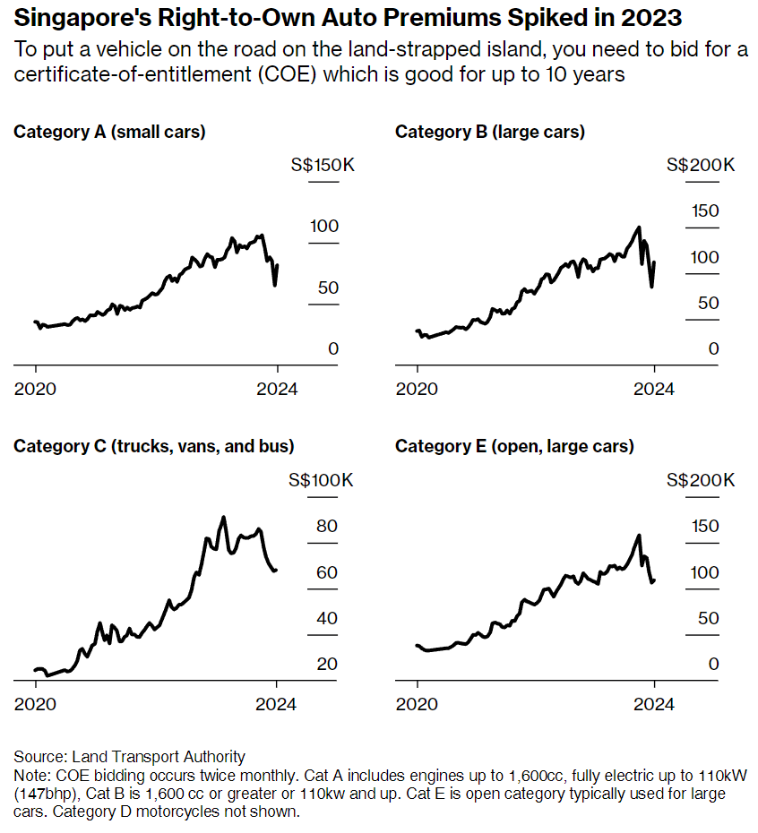 Ставка COE устанавливается на аукционе каждые две недели и за три года выросла почти в четыре раза, достигнув в октябре 150 000 сингапурских условных единиц за автомобили с двигателями объёмом более 1,6 литра.
