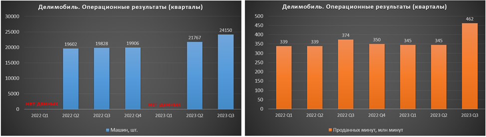 В 3Q 23 количество проданных минут выросло на 34% кв/кв, правда, до этого 5 кварталов показатель был стабилен. Частично, это объясняется ростом автопарка на 11% кв/кв.