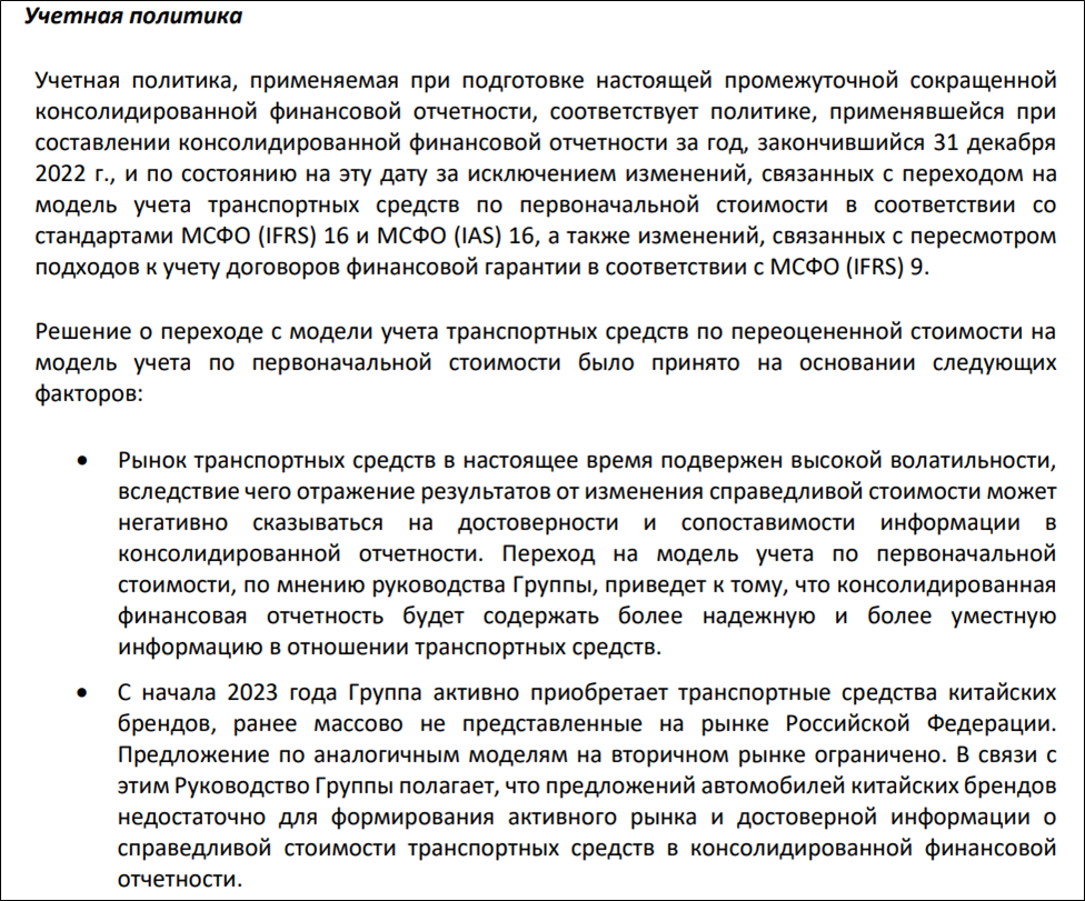 Делимобиль в 2023 поменял учетную политику, и теперь машины оцениваются по первоначальной стоимости. Из-за этого прибыль получается завышенной.