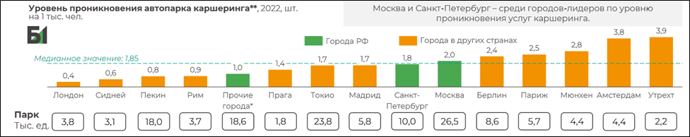 К слову, согласно исследования «Б1»: в Москве и Санкт-Петербурге уже и так высокий уровень проникновения каршеринга. Получается, что в этих регионах драйвер экспансии минимален.