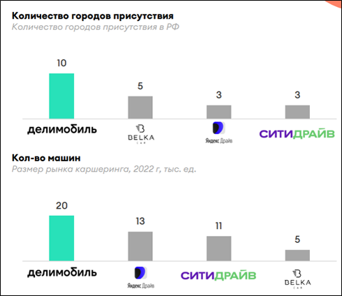 Компания позиционирует себя лидером рынка, как по городам присутствия, так и по количеству машин. Но очевидно, что конкуренция есть. Причем среди прямых конкурентов, фигурирует «Яндекс Драйв», у которого явно больше финансовых и технологических ресурсов.