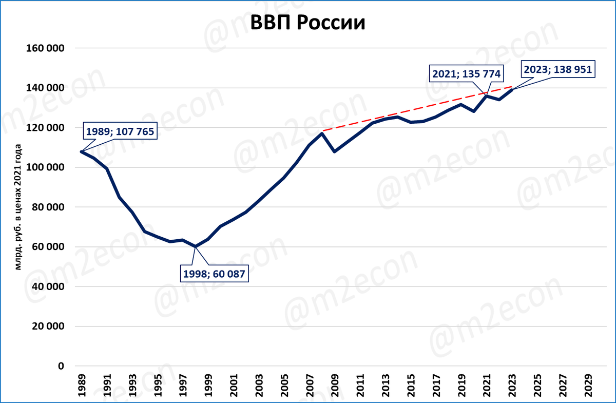 Другое дело, что рост 1998-2008 года (7% в среднем в год) закончился. А рост после 2008 года (1% в среднем в год) означает многолетнюю стагнацию.