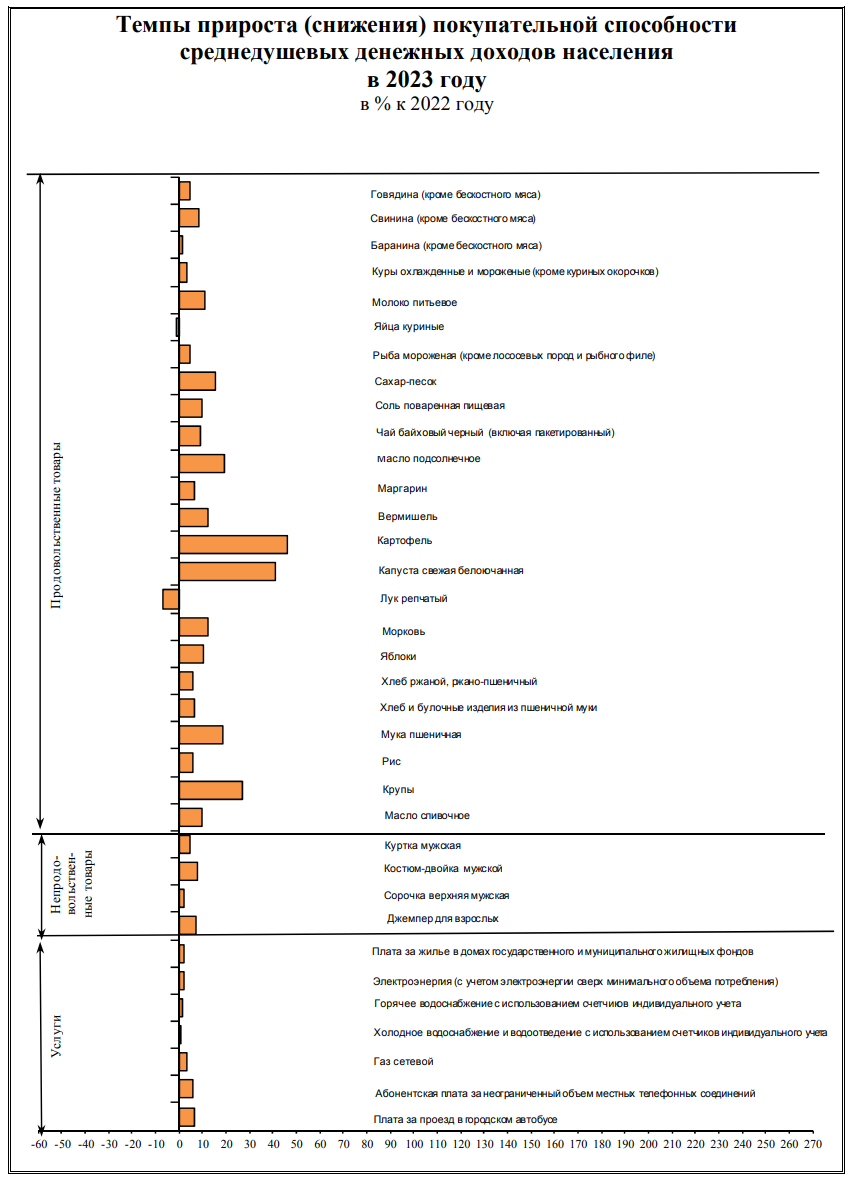 То есть, полоска вправо - значит, по этой товарной группе можно купить на столько процентов больше физического объема в 2023 по сравнению с 2022 на среднедушевой доход.