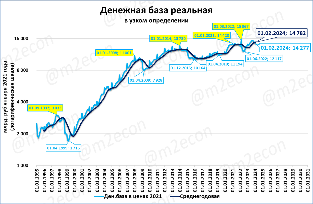 Узкая денежная база замедлила рост в январе и продолжает замедляться в феврале (негатив).